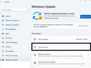 انتقل إلى علامة تبويب Windows Update وانقر فوق محفوظات التحديث.